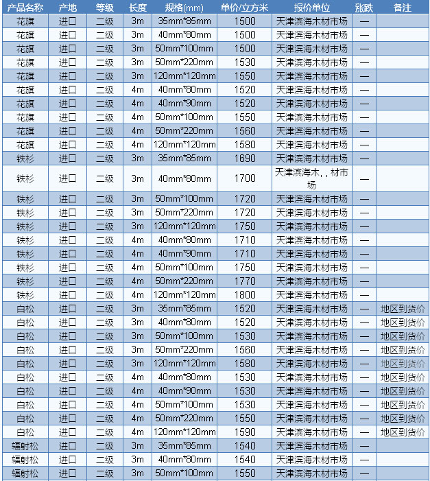 木材市場(chǎng)聯(lián)盟新動(dòng)態(tài):2016 年中國(guó)市場(chǎng)針葉材原木進(jìn)口量大幅增加,而俄羅斯作為中國(guó)木材第一進(jìn)口大國(guó),其原木進(jìn)口量也隨大勢(shì)出現(xiàn)明顯增加??诎秲r(jià)格方面,目前滿洲里白松 14-20cm為650元/方,綏芬河740元/方,太倉(cāng)950元/方。樟子松滿洲里14-20cm為620元/方,綏芬河700元/方,太倉(cāng)28cm以 下820元/方。落葉松滿洲里14-20cm為660元/方,綏芬河700元/方,太倉(cāng)930元/方。