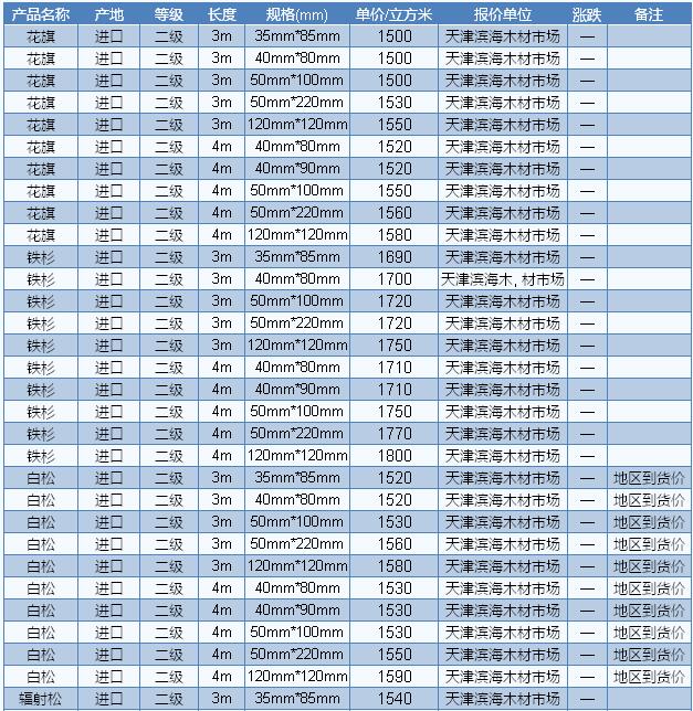 2016年9月22日天津木材市場方木價格