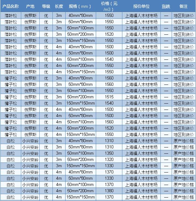 木材市場(chǎng)聯(lián)盟新動(dòng)態(tài):2016 年中國(guó)市場(chǎng)針葉材原木進(jìn)口量大幅增加,而俄羅斯作為中國(guó)木材第一進(jìn)口大國(guó),其原木進(jìn)口量也隨大勢(shì)出現(xiàn)明顯增加。口岸價(jià)格方面,目前滿洲里白松 14-20cm為650元/方,綏芬河740元/方,太倉(cāng)950元/方。樟子松滿洲里14-20cm為620元/方,綏芬河700元/方,太倉(cāng)28cm以 下820元/方。落葉松滿洲里14-20cm為660元/方,綏芬河700元/方,太倉(cāng)930元/方。