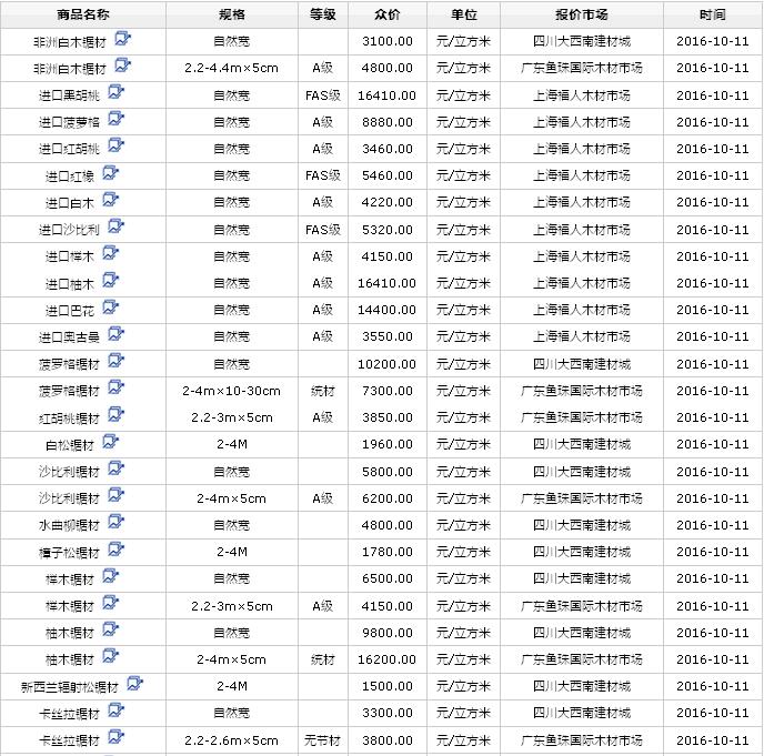 2016年10月11日進口鋸材價格行情