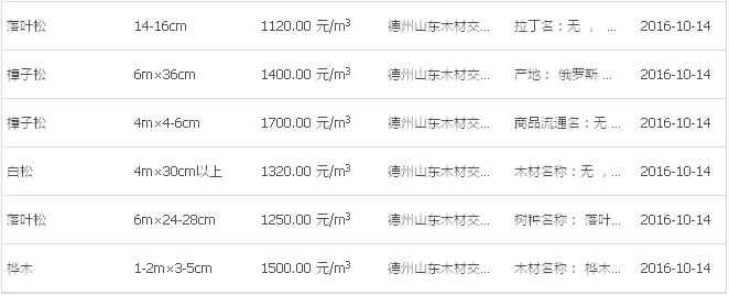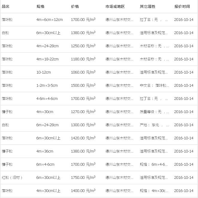2016年10月14日國內(nèi)木材價(jià)格行情