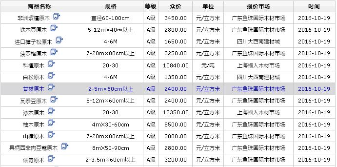 2016年10月19日進(jìn)口原木價(jià)格行情