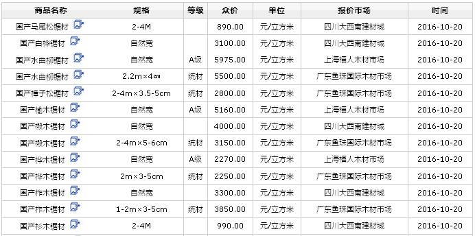2016年10月20日國(guó)產(chǎn)鋸材價(jià)格行情