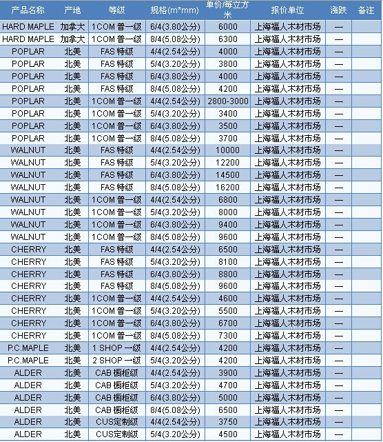 木材市場(chǎng)聯(lián)盟新動(dòng)態(tài):近期,因傳統(tǒng)旺季回暖有限,北美木材市場(chǎng)依然沒有明顯的好轉(zhuǎn),多數(shù)種類品種出貨量均維持在較為低迷的態(tài)勢(shì)。而且,隨著進(jìn)貨價(jià)格的下滑,北美部分木材價(jià)格出現(xiàn)些許的下跌。其中如紅橡,近期價(jià)格出現(xiàn)了200元/立方米的回落。目前廣東市場(chǎng)紅橡長(zhǎng)2.15—3.05m、厚1—2寸、FAS級(jí)報(bào)價(jià)7000—8800元/立方米。