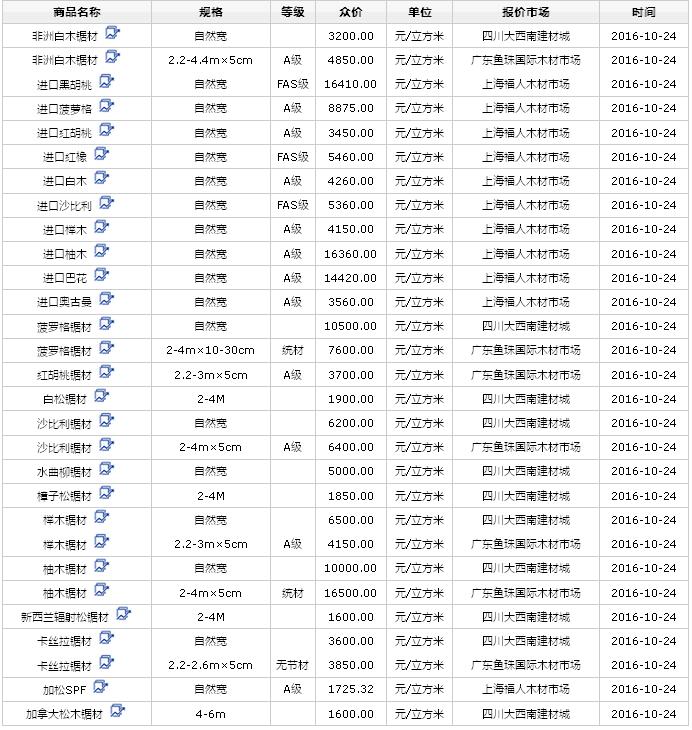 2016年10月24日進(jìn)口鋸材價(jià)格行情