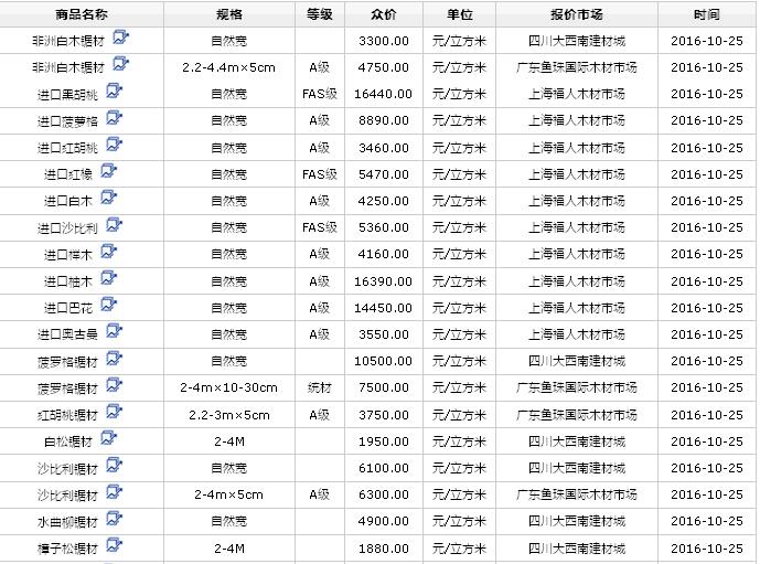 2016年10月25日進(jìn)口鋸材價(jià)格行情