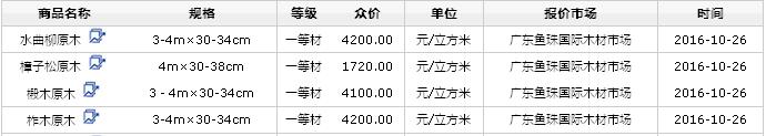 2016年10月25日國(guó)產(chǎn)原木價(jià)格行情