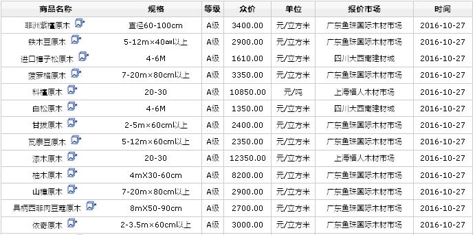 2016年10月27日進(jìn)口原木價(jià)格行情