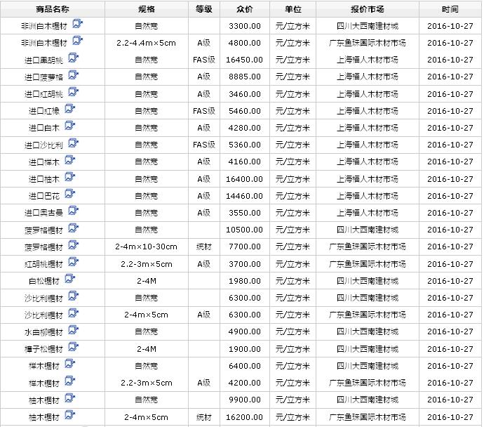 2016年10月27日進口鋸材價格行情