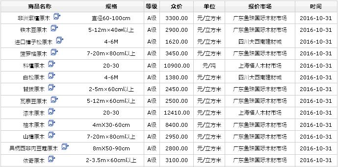 2016年10月31日進(jìn)口原木價(jià)格行情