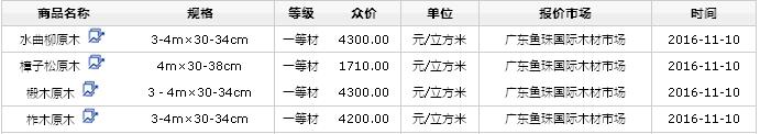 2016年11月10日國產(chǎn)原木價格行情