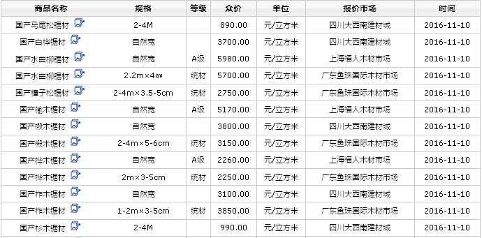 2016年11月10日國產(chǎn)鋸材價(jià)格行情
