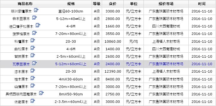2016年11月10日進(jìn)口原木價(jià)格行情