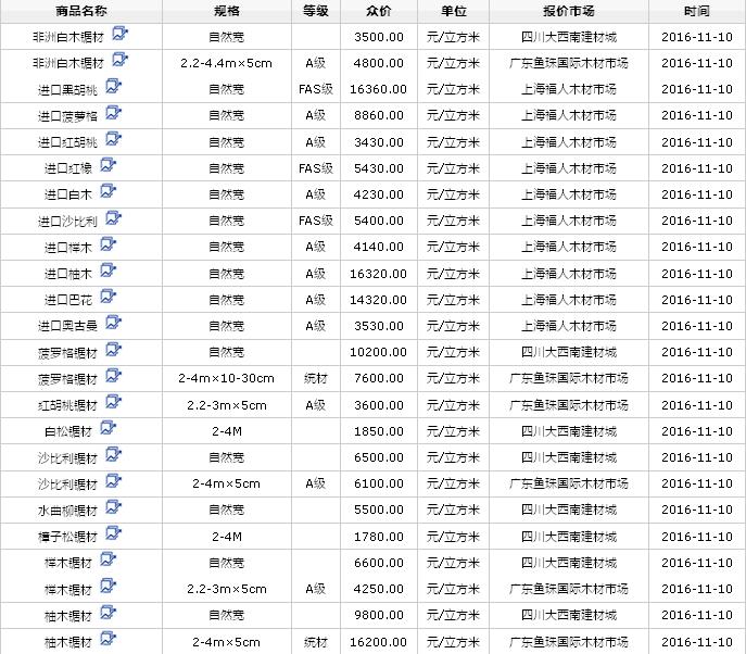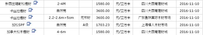 2016年11月10日進口鋸材價格行情