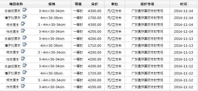 2016年11月(12\13\14日)國產(chǎn)原木價格行情