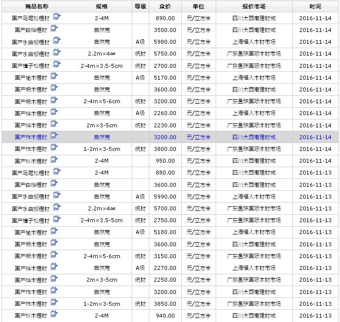 2016年11月(12\13\14日)國產(chǎn)鋸材價格行情