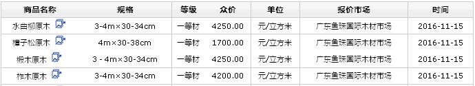 2016年11月15日國(guó)產(chǎn)原木價(jià)格行情