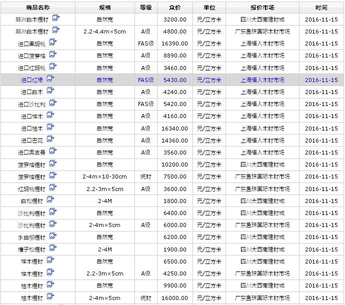 2016年11月15日進(jìn)口鋸材價(jià)格行情