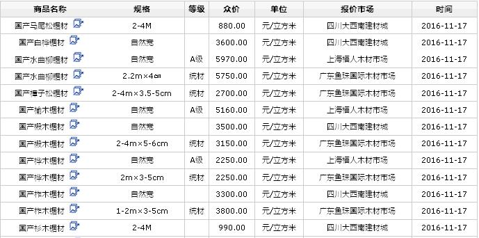 2016年11月17日國(guó)產(chǎn)鋸材價(jià)格行情
