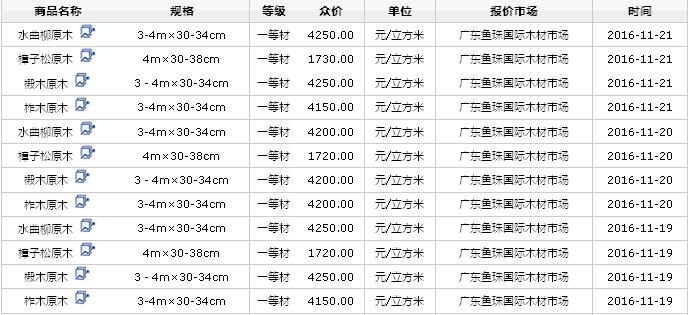 2016年11月(19、20、21)日國產(chǎn)原木價(jià)格行情