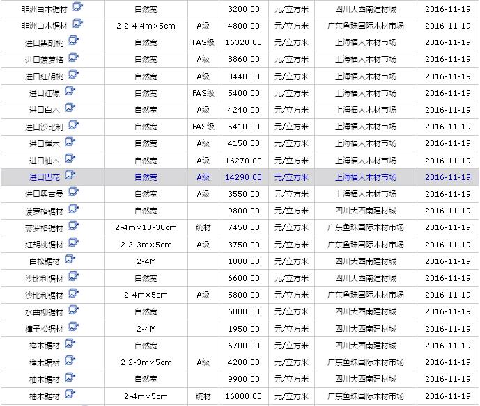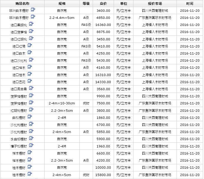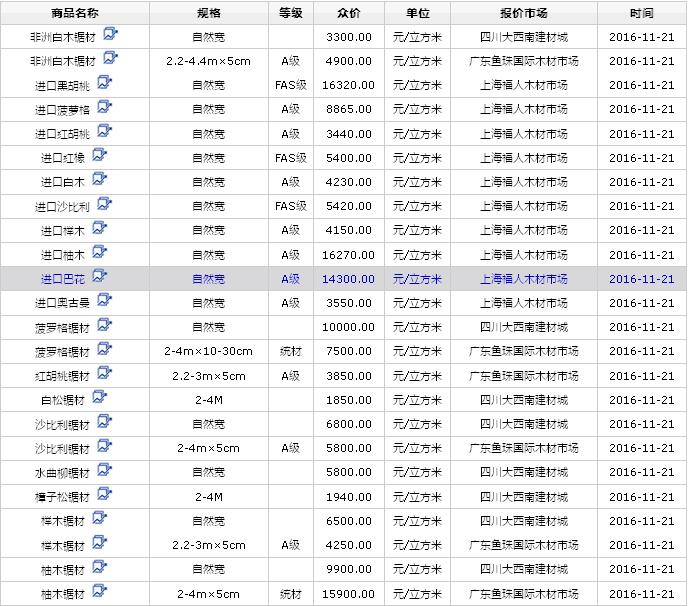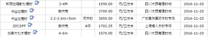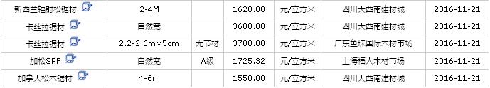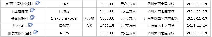 2016年11月(19、20、21)日進口鋸材價格行情
