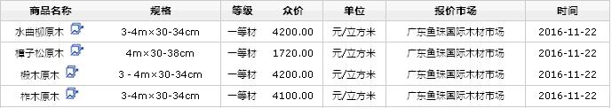 2016年11月22日國(guó)產(chǎn)原木價(jià)格行情