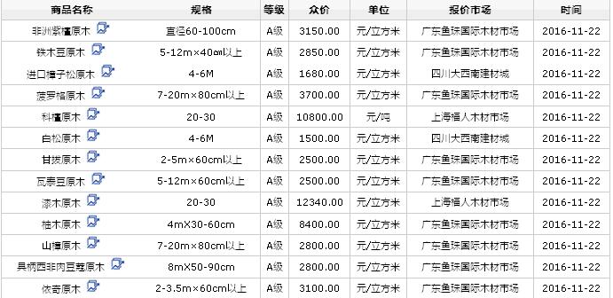 2016年11月22日進口原木價格行情