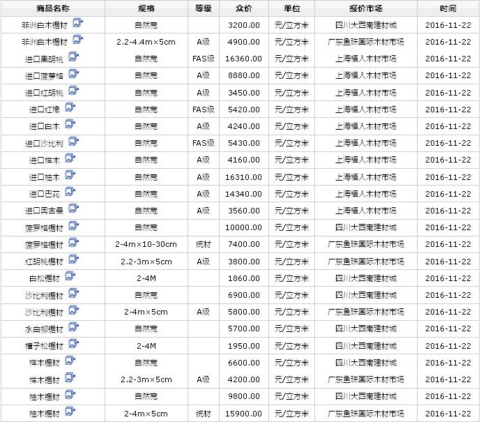 2016年11月22日進(jìn)口鋸材價(jià)格行情