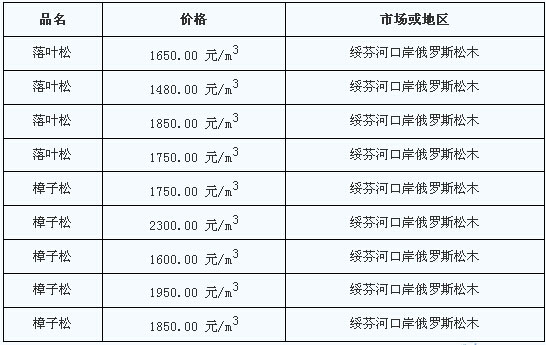 2014年10月8日綏芬河口岸落葉松、樟子松價格行情