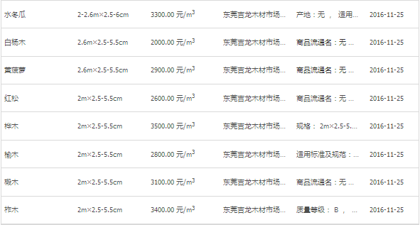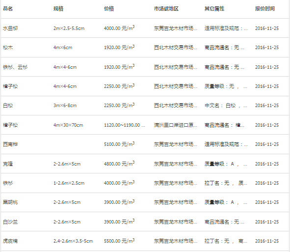 2016年11月25日國(guó)內(nèi)木材價(jià)格行情