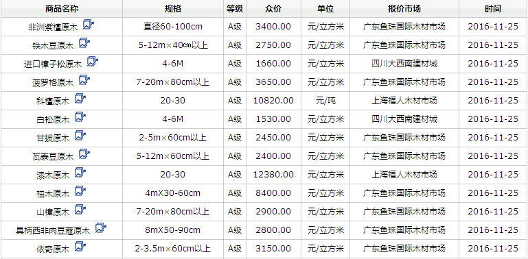 2016年11月25日進(jìn)口原木價(jià)格行情