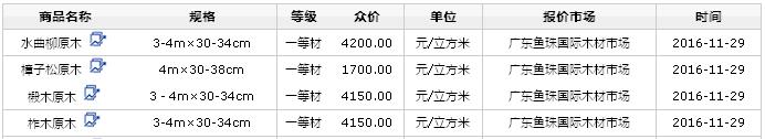 2016年11月29日國(guó)產(chǎn)原木價(jià)格行情