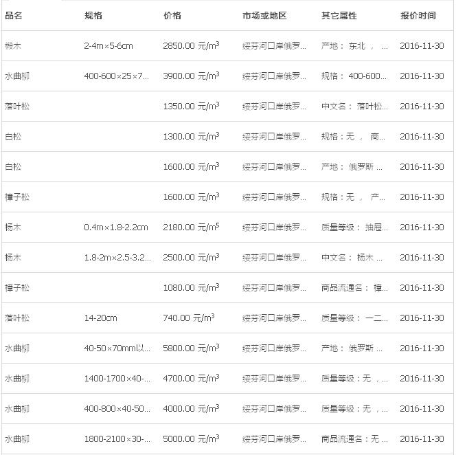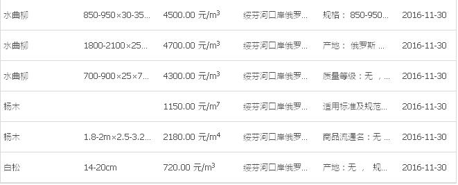 2016年11月30日國(guó)內(nèi)木材價(jià)格