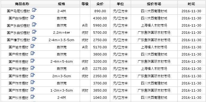 2016年11月30日國(guó)產(chǎn)鋸材價(jià)格行情