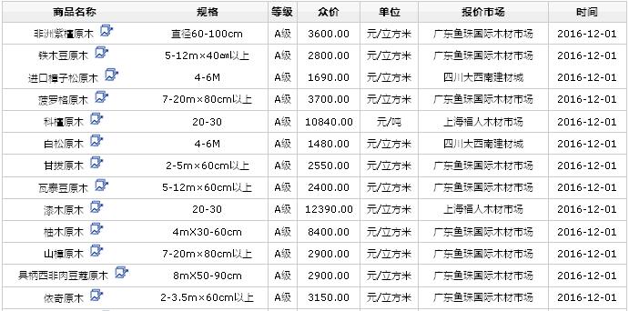 2016年12月1日進(jìn)口原木價(jià)格行情