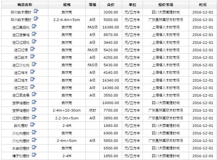 2016年12月1日進(jìn)口鋸材價格行情
