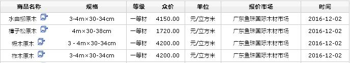 2016年12月2日國產(chǎn)原木價(jià)格行情