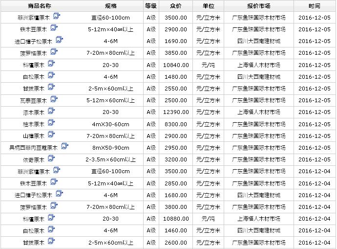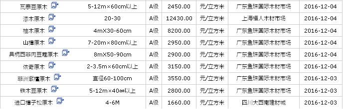 2016年12月(3\4\5日)進(jìn)口原木價格行情