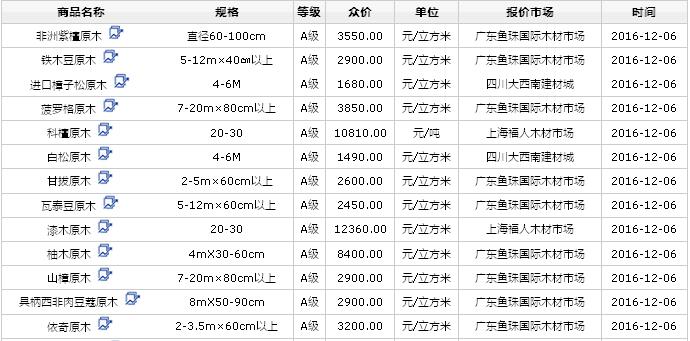 2016年12月6日進口原木價格行情