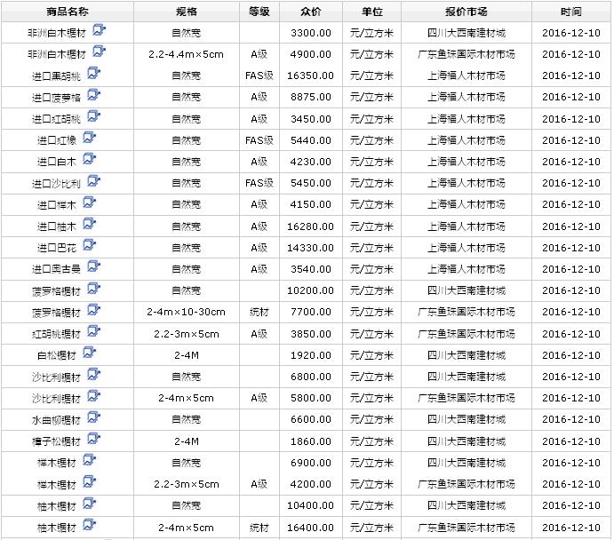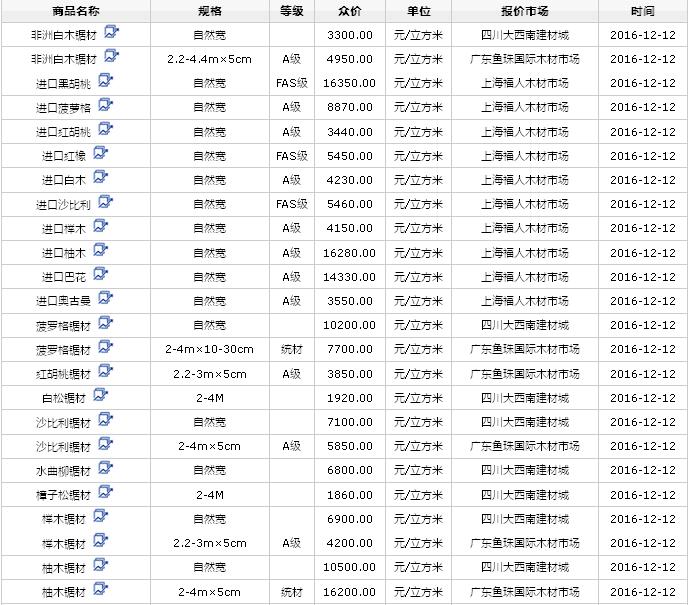 2016年12月(10/11/12日)進(jìn)口鋸材價(jià)格行情