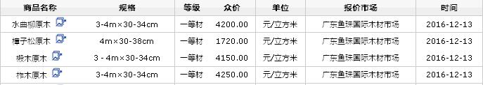 2016年12月13日國(guó)產(chǎn)原木格行情