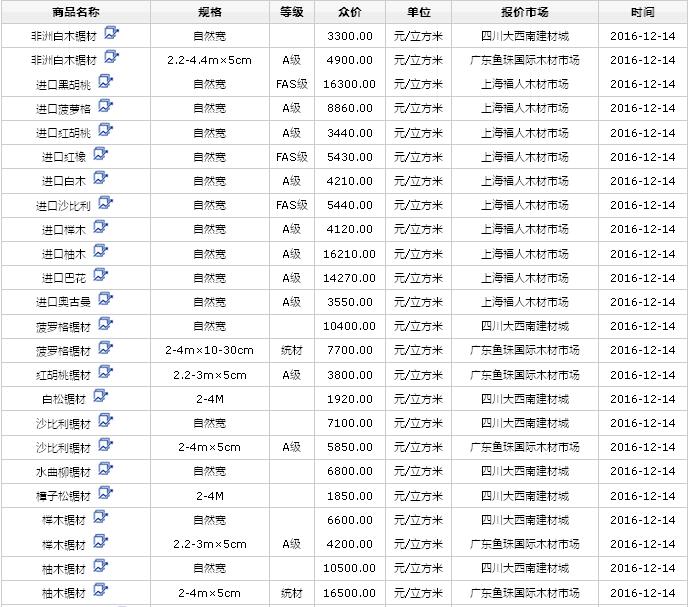 2016年12月14日進口鋸材價格行情