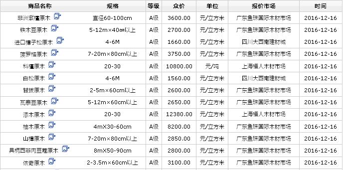 2016年12月16日進(jìn)口原木價(jià)格行情
