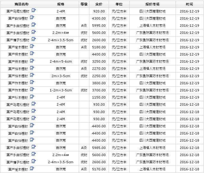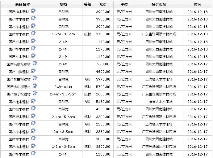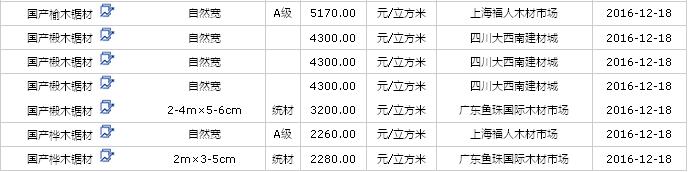 2016年12月(17、18、19日)國產(chǎn)鋸材價(jià)格行情