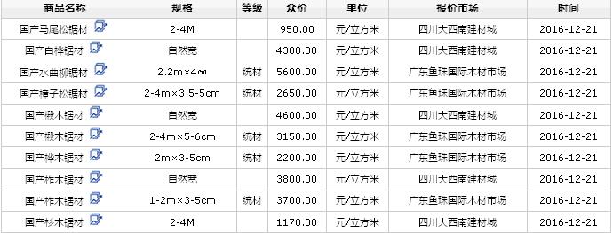 2016年12月21日國產(chǎn)鋸材價(jià)格行情