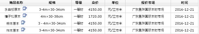 2016年12月21日國(guó)產(chǎn)原木價(jià)格行情
