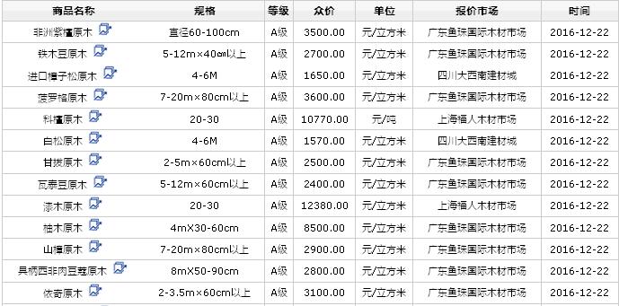 2016年12月22日進(jìn)口原木價(jià)格行情