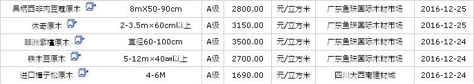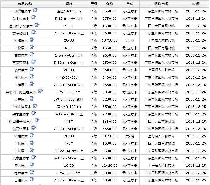 2016年12月(24\25\26日)進(jìn)口原木價(jià)格行情