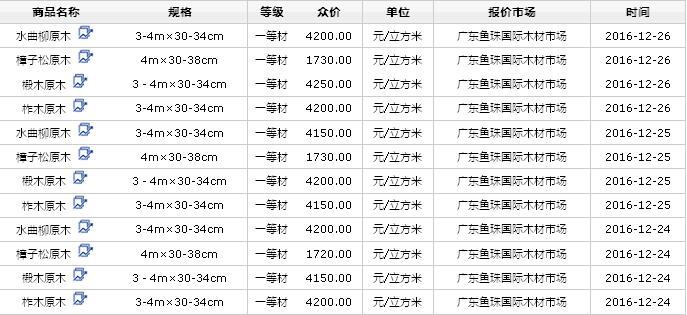 2016年12月(24\25\26日)國產(chǎn)原木價(jià)格行情