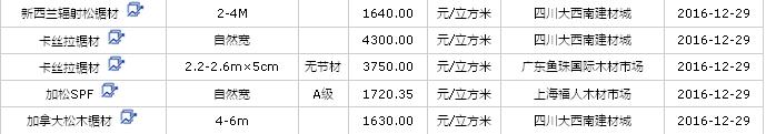 2016年12月29日進口鋸材價格行情